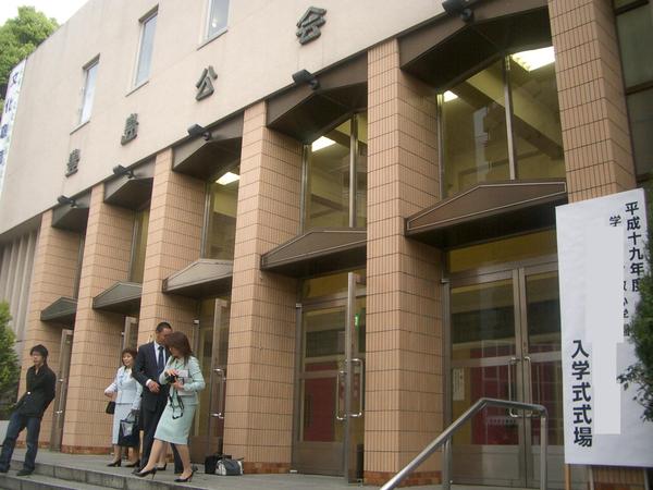 入學典禮在豐島區公會堂,在門口終於遇到被我「騷擾」已久的龜田先生,還是他先認出我的,應該不是被記恨吧哈哈。因為我人不在日本,所有跟學校的聯絡都是透過他,而且因為沒有前例,時間又趕,真的是給他添了不少麻煩。從門口開始到會場的每個轉角,都有學校的職員笑容可掬的跟妳說「おめでとうございます(恭喜入學)」,一打開禮堂門更不得了,一整排的人同時鞠躬,驚嚇過度的我隱約聽到有人大喊「XXXX科お願いします(請帶到XX學科)」,就糊裡糊塗地被帶到座位上。